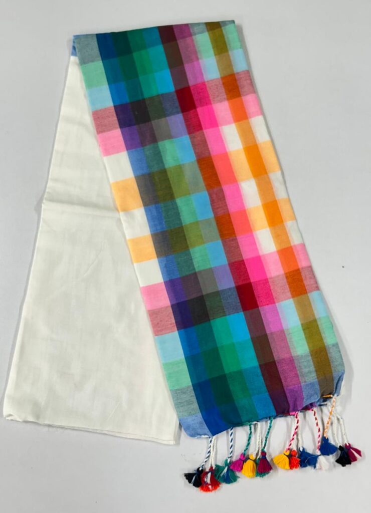 | Pattern | Solid Colour Checked Saree | Saree Measurment | 5.50 Mtr / Blouse - 1.00 Mtr |