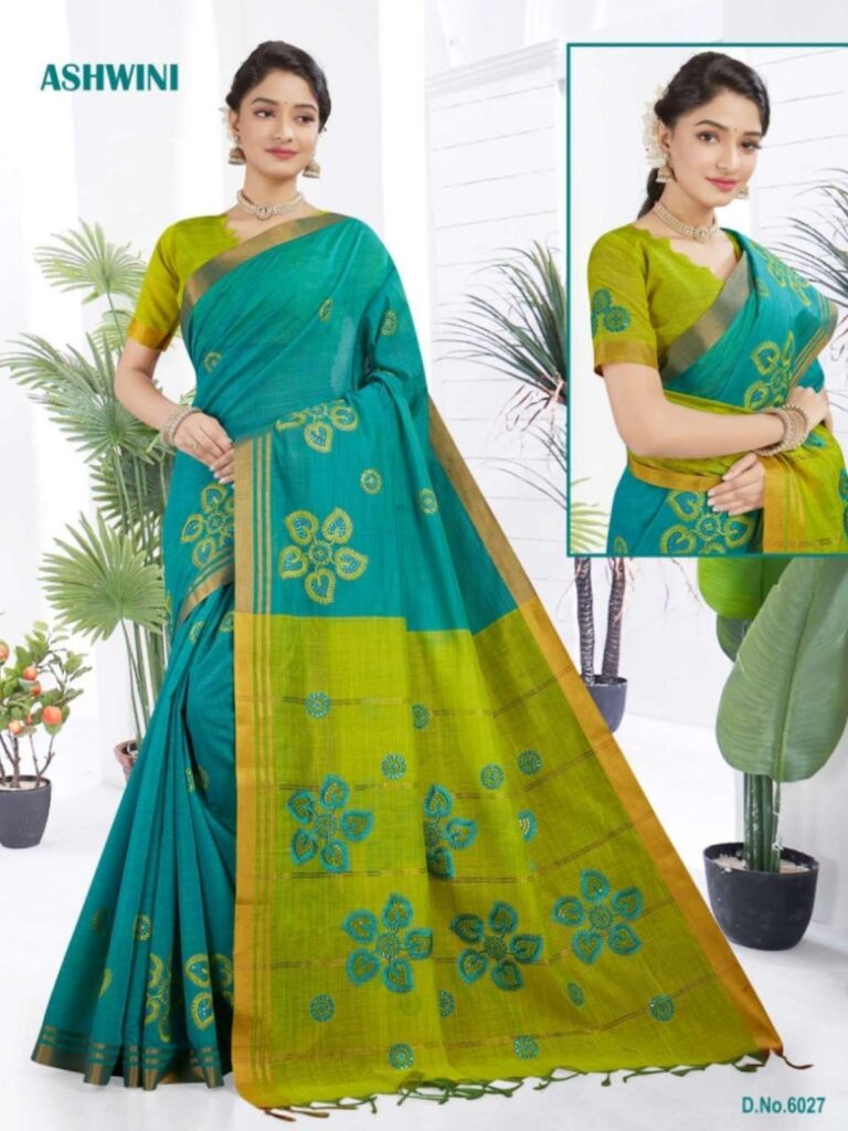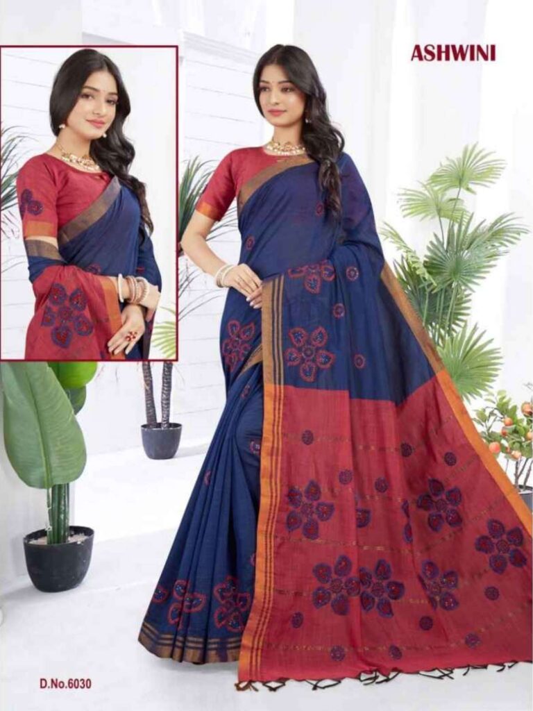 ASWINI SILK COTTON EMBROIDERY WORK SAREE 6027 – [Blue]