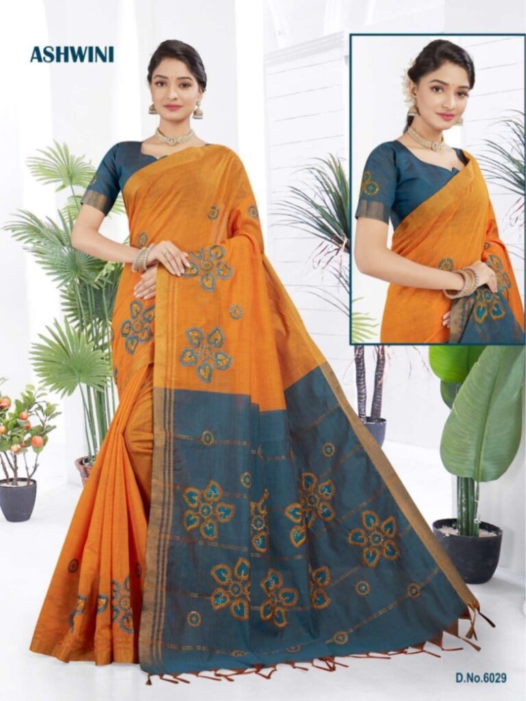 ASWINI SILK COTTON EMBROIDERY WORK SAREE 6029 – [Orange]