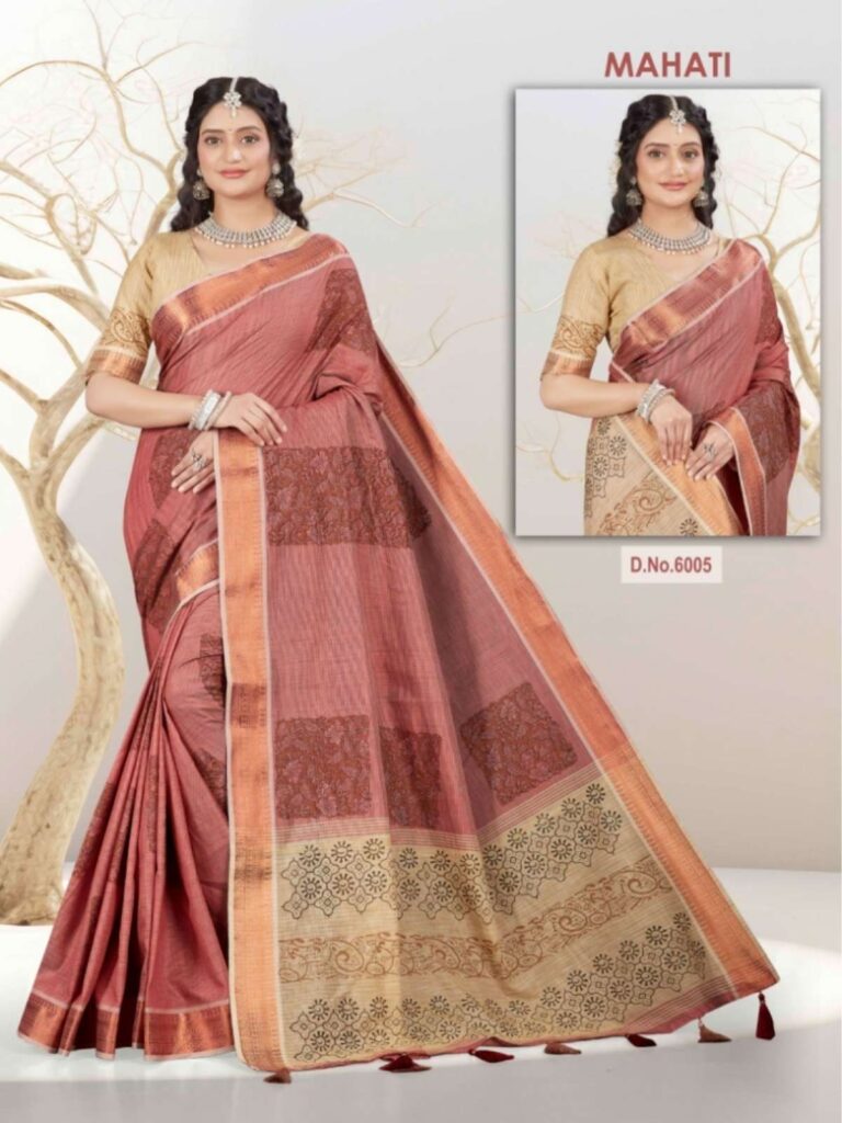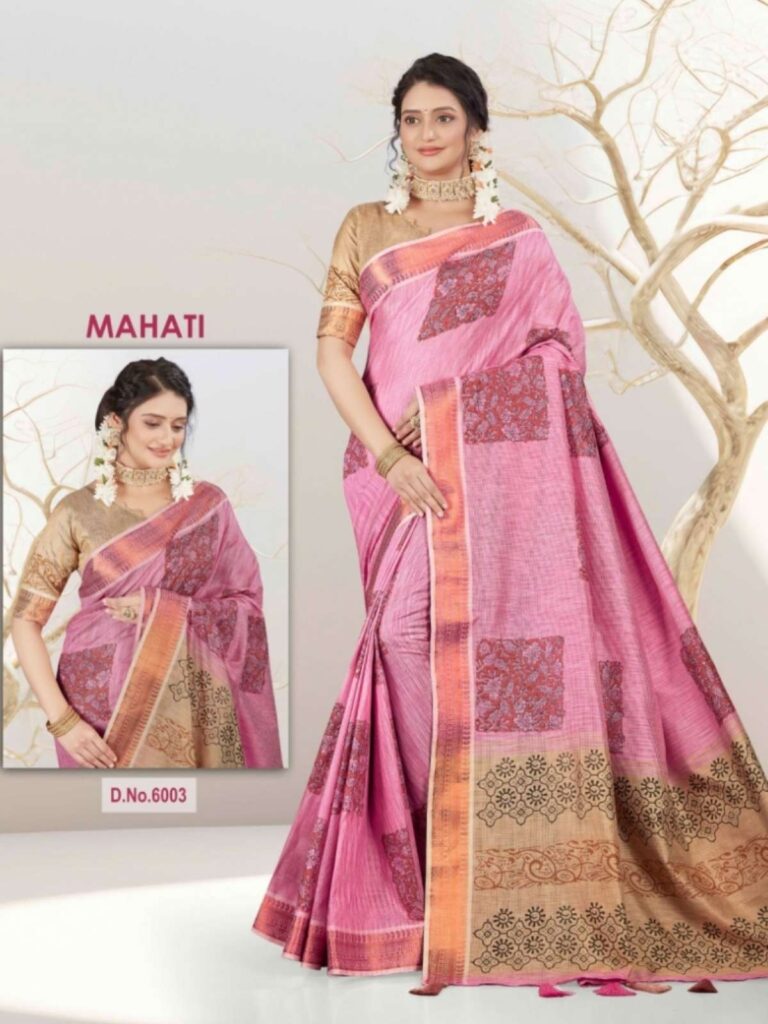 KHADI SILK COTTON SAREE – HAND BLOCK PRINTED – 6003 – [Pink]