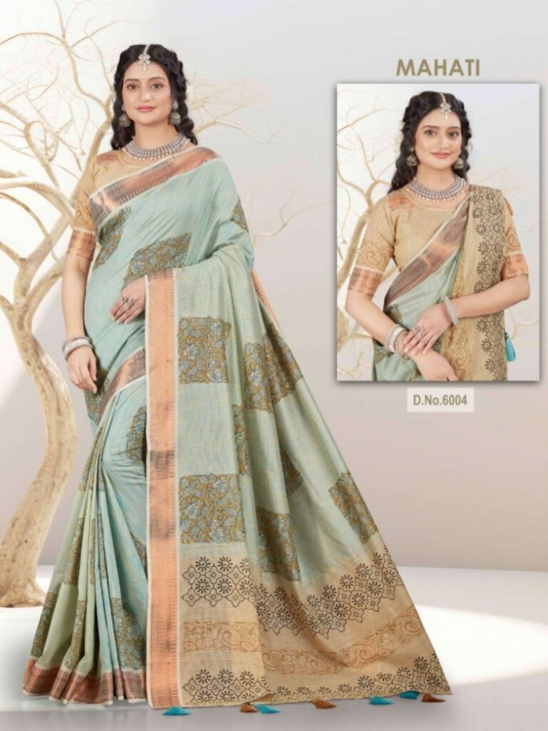 KHADI SILK COTTON SAREE – HAND BLOCK PRINTED – 6004