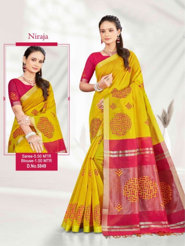 NIRAJA SILK COTTON SAREE WITH EMBROIDERY WORK – 5849 – YELLOW X PINK – [Yellow]