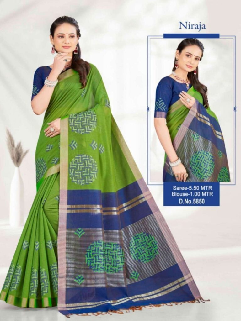 NIRAJA SILK COTTON SAREE WITH EMBROIDERY WORK – 5854 – MUSTRAD X GREEN – [Mustrad]