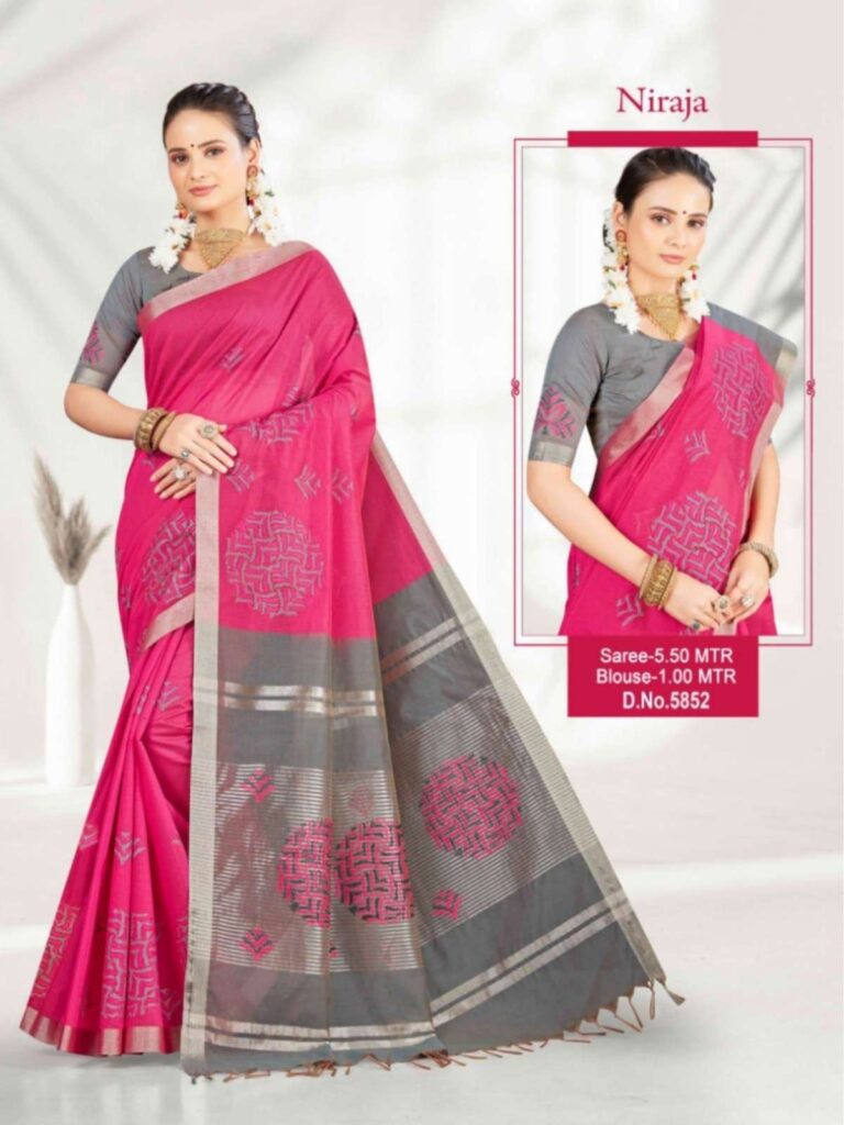 NIRAJA SILK COTTON SAREE WITH EMBROIDERY WORK – 5852 – PINK X GRAY – [Pink]