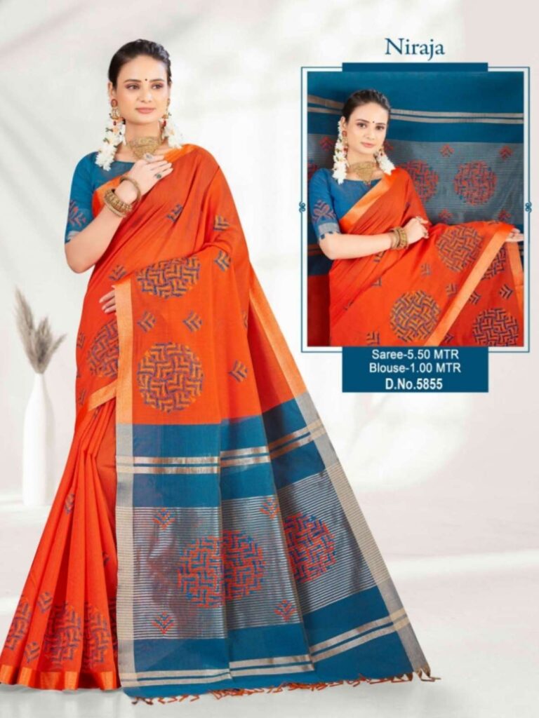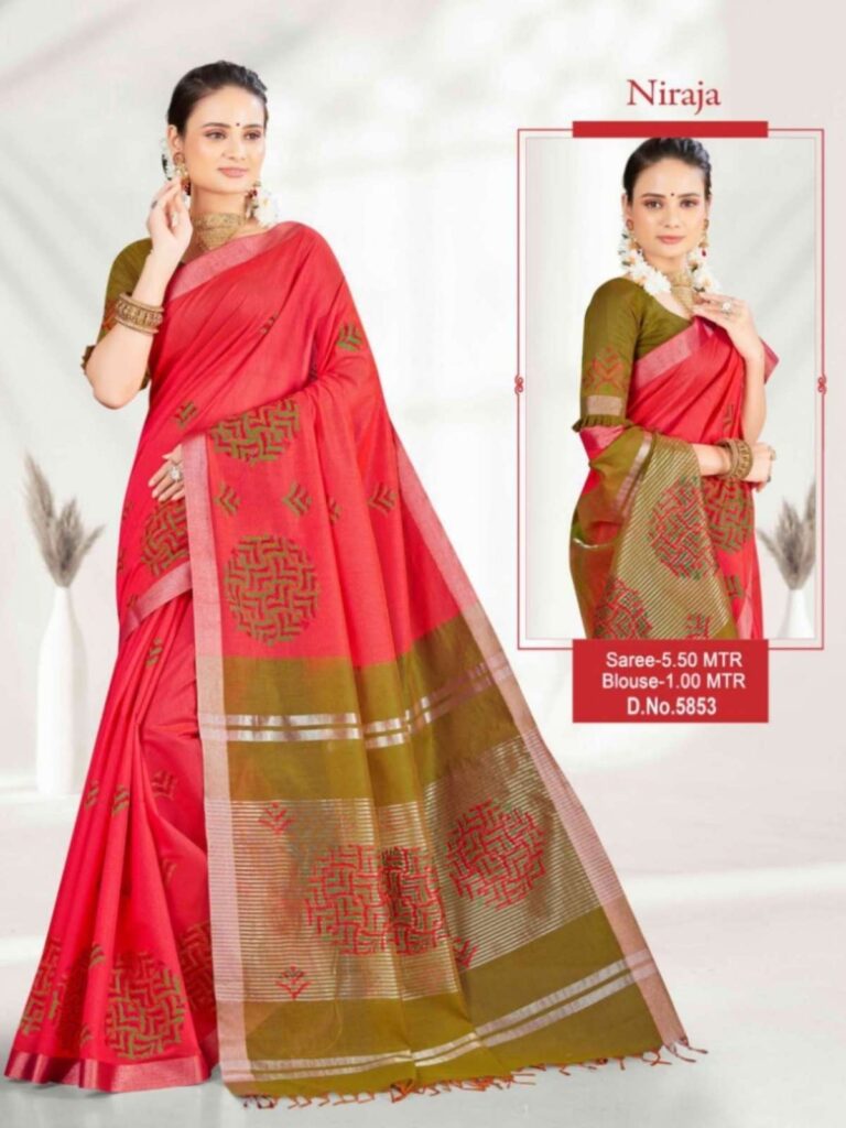 NIRAJA SILK COTTON SAREE WITH EMBROIDERY WORK – 5853 – REX X MUSTRAD – [Red]