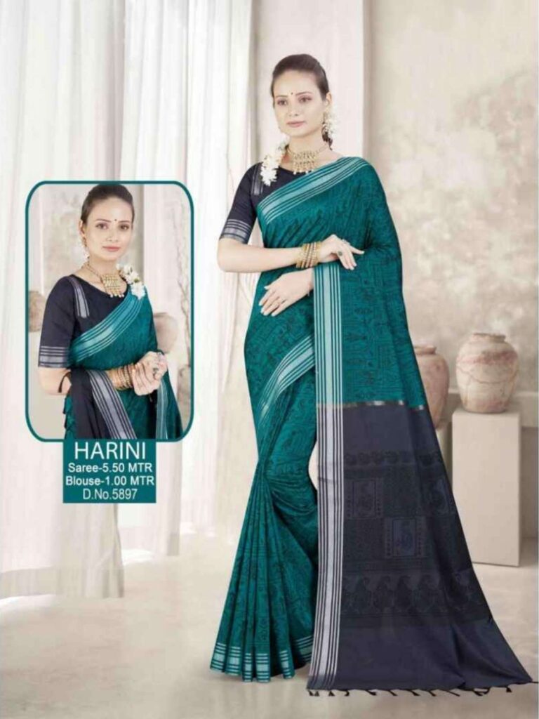 HARINI (SILK COTTON-SOFT) #5897 – DEEP TEAL X GRAY
