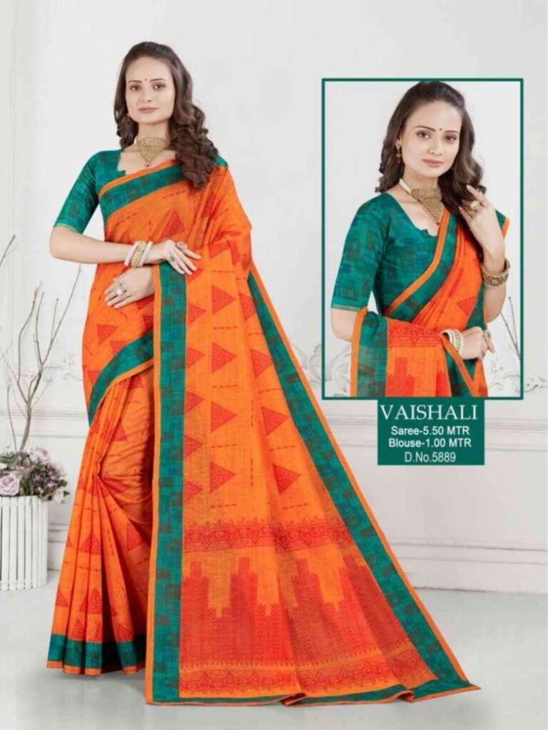Vaishali #5889 Orange X Peacock Green – [Orange]