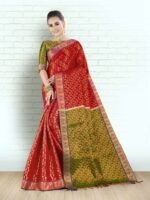 AKALYA (COPPER SILK SAREE) – RED X FOREST GREEN – [Red]