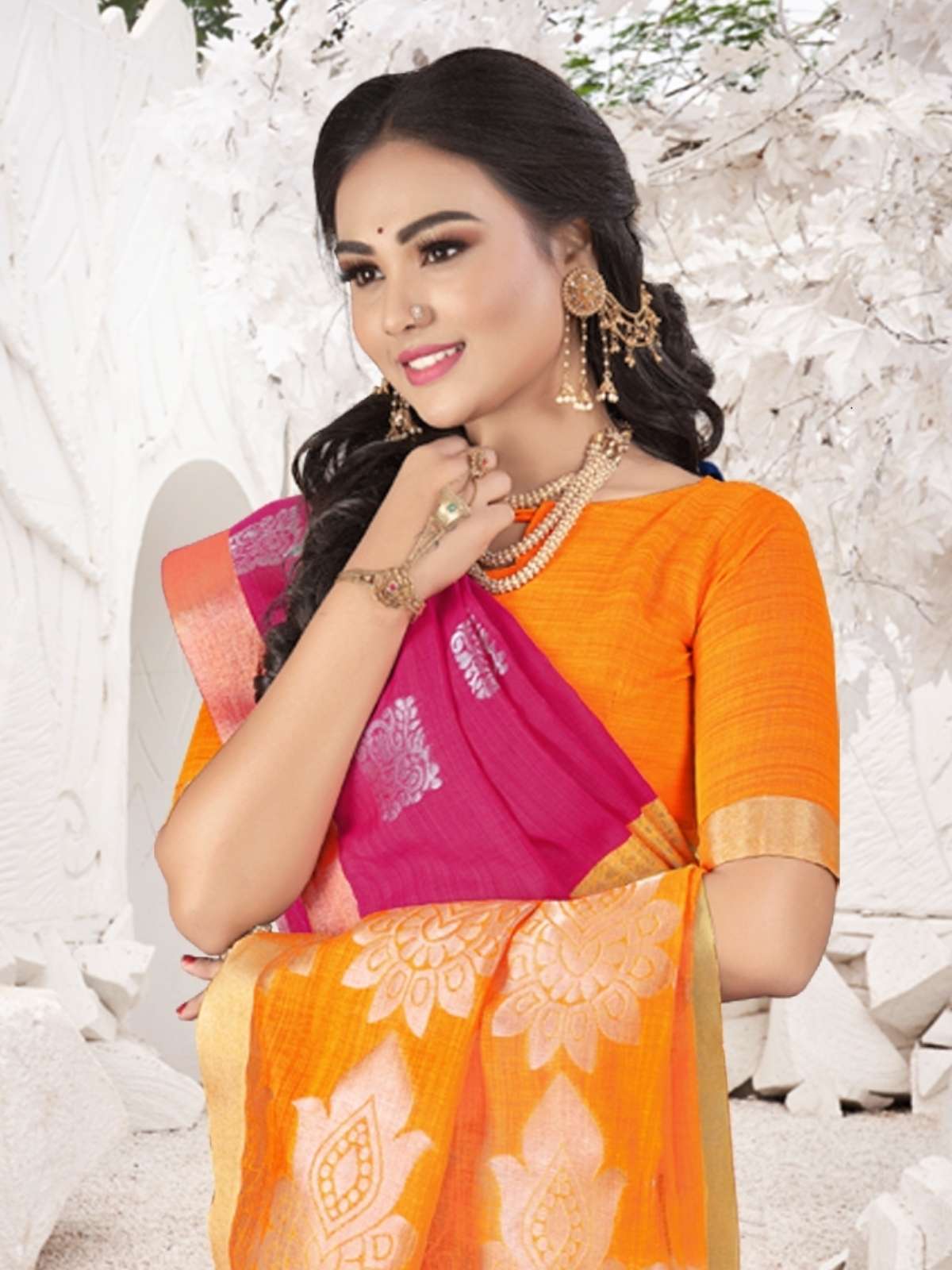 Chettinad Cotton Jacquard Saree -TEJASHVI #5550 Hot Pink X Fire Gold – [RANI PINK]