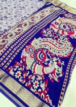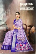 Premium Soft And Smoothy Semi Dola Silk Saree Manipuri Printed Design On All Over The Body, Borders Having Katha Stitch And Beautifull Pallu With Self Colour Butta Blouse.