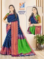 Be the first to review “HAASINI – 1000 BUTTA CHECTTINAD SILK COTTON SAREE NAVY BLUE X GREEN – [Blue]” Cancel reply
