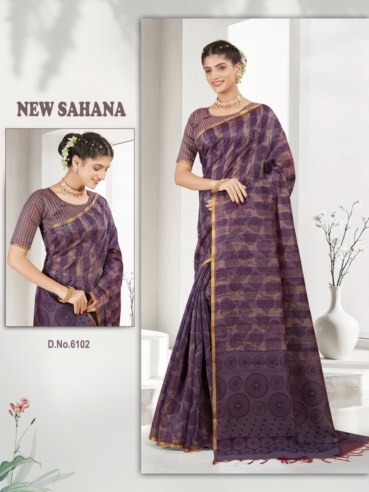 Slub Cotton with Full Print On Body And Self  Colour Blouse