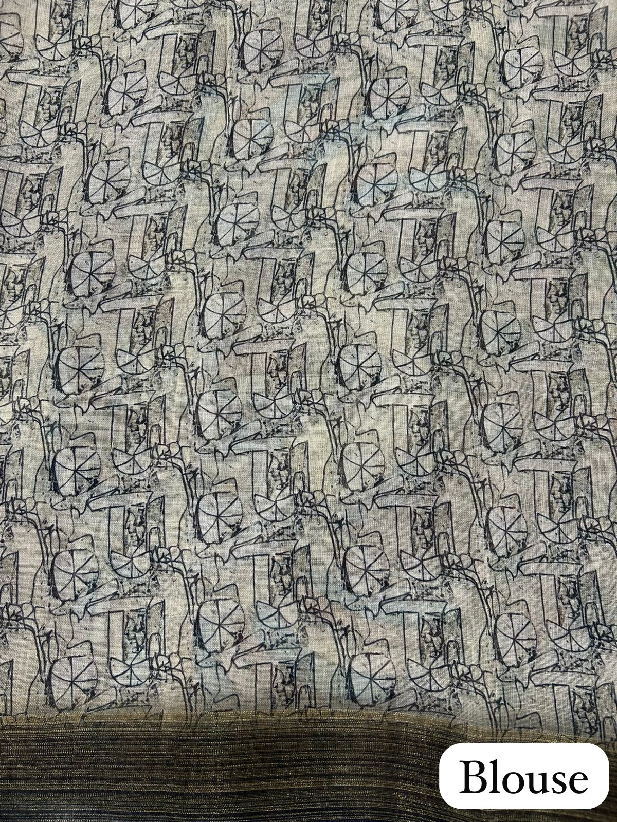 Elegant light weight soft cotton saree with printed all-over the body , along with print on pallu with printed blouse.
