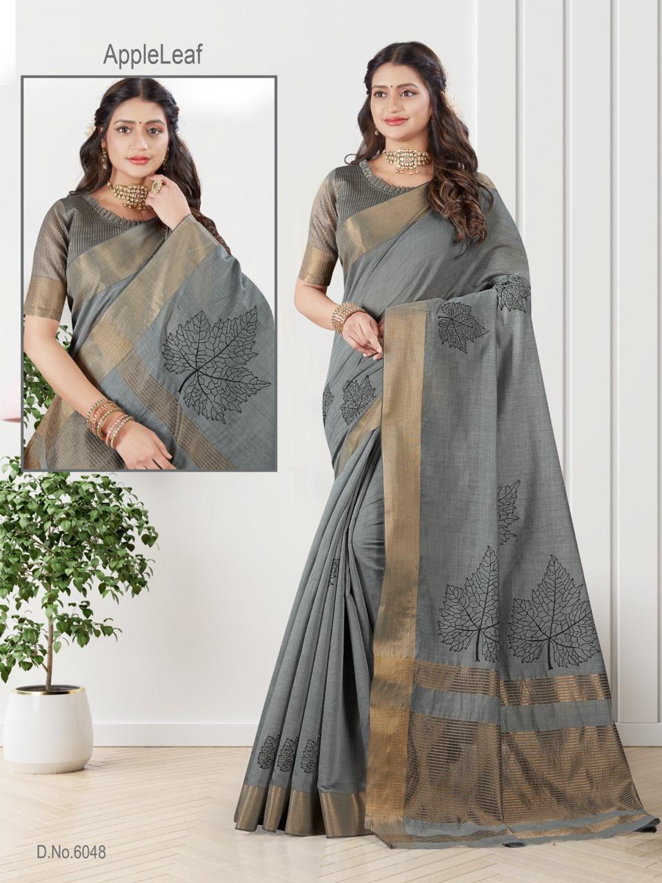 Apple leaf Premium Light Weight Silk Cotton Saree With All-Over Embroidary On Body, Along With Jari Striped pallu & Blouse
