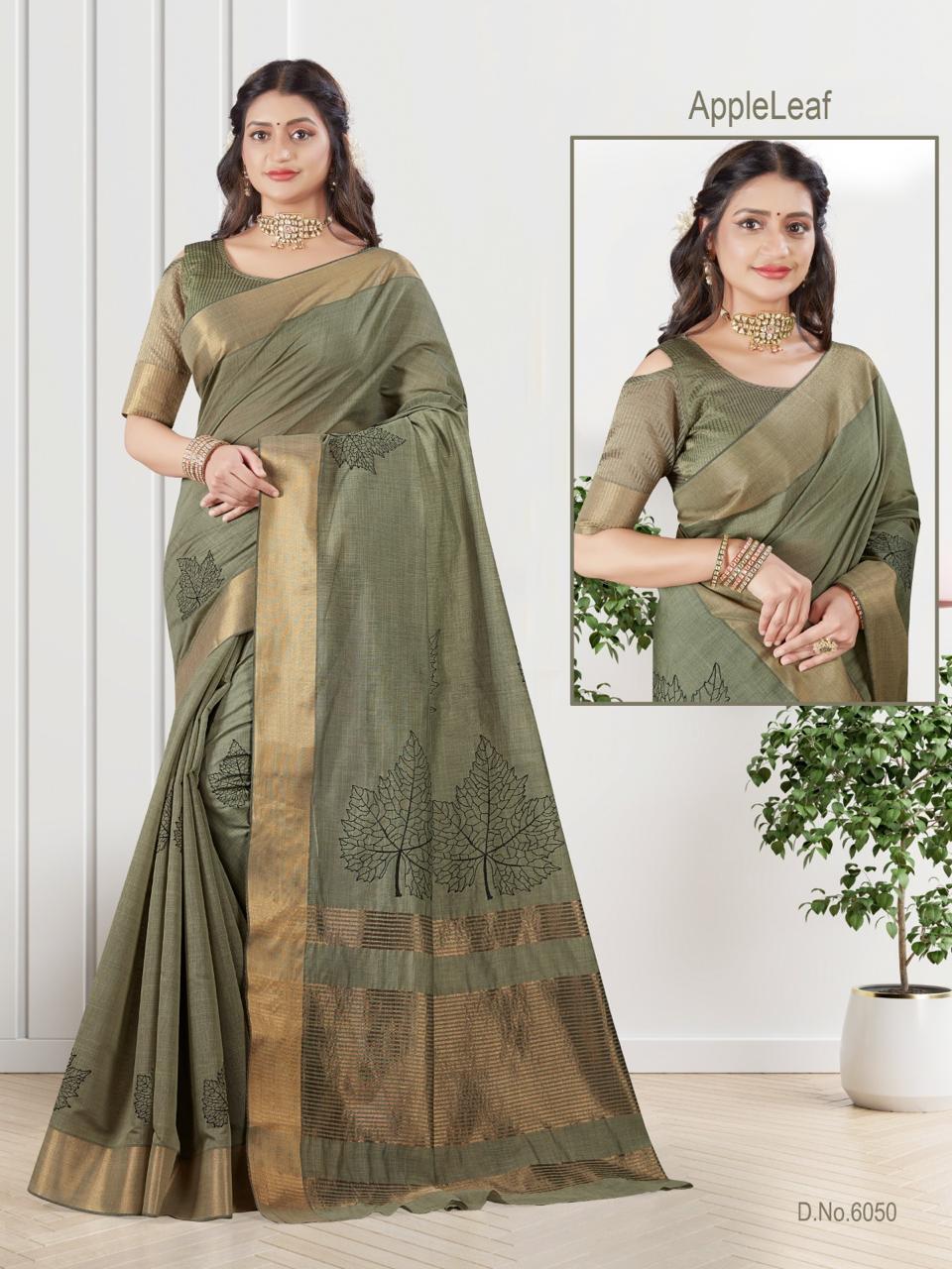 Apple leaf Premium Light Weight Silk Cotton Saree With All-Over Embroidary On Body, Along With Jari Striped pallu & Blouse