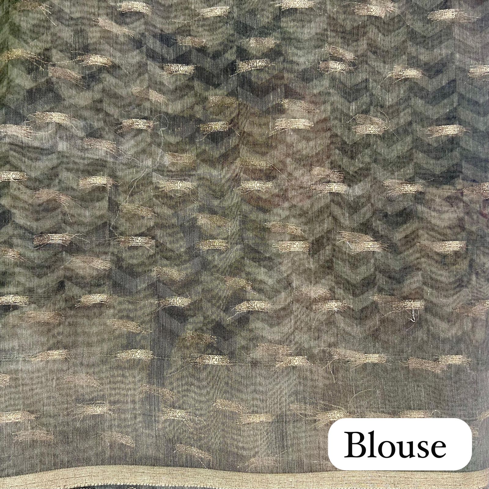 Elegant light weight tusser silk saree with Jari butta alover the body, along with peacock digital print on pallu with solid colour butta blouse.