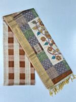 Simple and Elegant style tusser silk saree with beautiful squre digital print on the Body With Kalamkari Style Pallu & Blouse