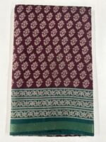 A Soft And Silky Smooth Viscose Silk Material With Ajark/Kalamkari Style Print All-over The Body And Contrasts Pallu And Blouse