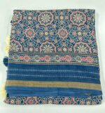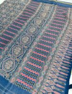 Premium Viscose silk Fabric Saree With Ajark Style print With Kantha Stitch Border Work Along With Printed Self Colour Pallu & Butta Plain Blouse.