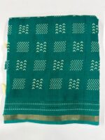 Premium Viscose silk Fabric Saree With Ajark Style print With Kantha Stitch Border Work Along With Printed Self Colour Pallu & Butta Plain Blouse.