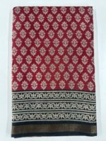 A Soft And Silky Smooth Viscose Silk Material With Ajark/Kalamkari Style Print All-over The Body And Contrasts Pallu And Blouse
